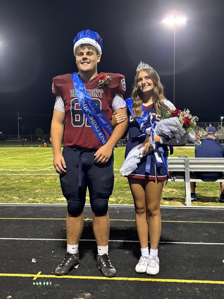 Grady Baker took a break from wearing his football helmet to put on the Homecoming crown. He was named Homecoming King and then was joined as royalty by his girlfriend, Lela Cutler, the 2025 Homecoming Queen, at halftime.